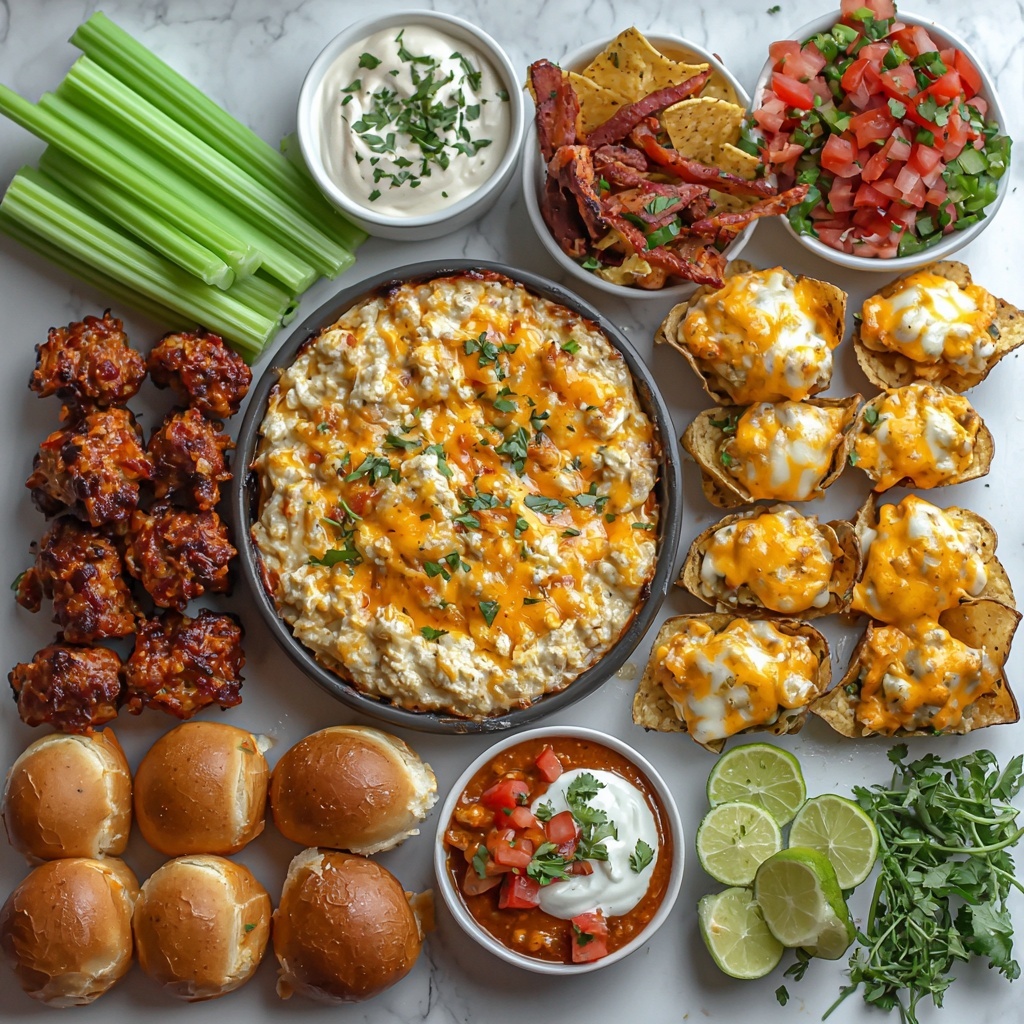Start by combining shredded chicken with creamy cheeses, hot sauce, and ranch or blue cheese dressing. Bake until bubbly and golden around the edges, then serve warm with crunchy tortilla chips or crisp celery sticks for a spicy, tangy hit everyone loves.