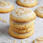 - Prepare the Glaze: While the cookies cool, whisk together the powdered sugar, milk, and 1/2 teaspoon almond extract until smooth. Drizzle or spread this glaze over the cooled cookies and garnish with sliced almonds if desired.