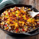 This Bacon Cheeseburger Rice Skillet is a hearty and flavorful one-pan meal that combines the savory richness of ground beef and bacon with cheesy, tender rice. Perfect for a quick weeknight dinner, this dish delivers all the classic cheeseburger flavors in an easy-to-make skillet recipe that the whole family will love.