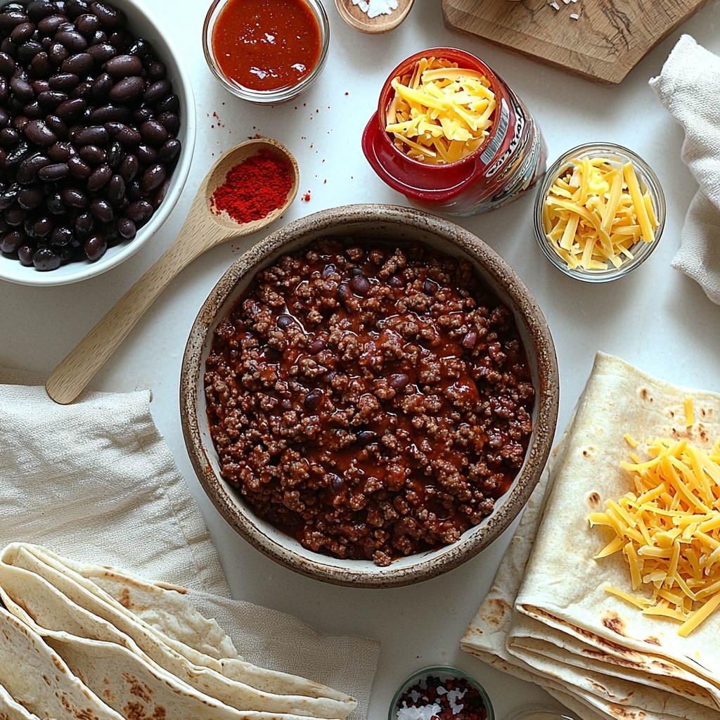 Lay out the tortillas and spoon a generous amount of the beef and bean mixture down the center of each one. Roll them up tightly so none of that delicious filling escapes. Arrange them seam side down in your baking dish, creating a snug lineup of rolled tortillas waiting to be sauced and sprinkled with cheese.