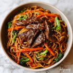 This Beef Lo Mein recipe features tender flank steak marinated and stir-fried to perfection with colorful vegetables and perfectly cooked lo mein noodles, all tossed in a flavorful homemade sauce. Ready in just 30 minutes, it’s a quick and satisfying meal packed with savory Asian-inspired flavors.
