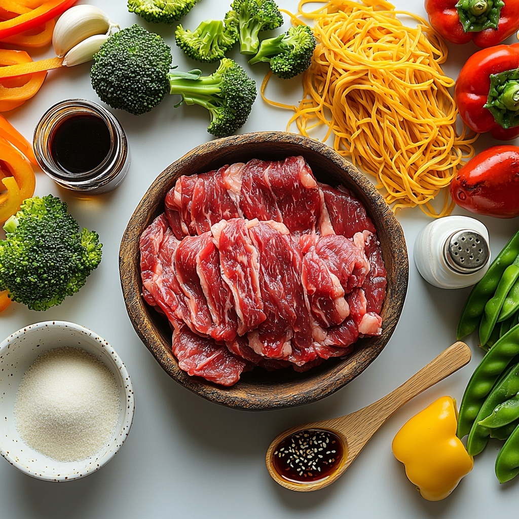 - 1 lb flank steak, thinly sliced against the grain: This cut is lean yet tender when sliced properly and marinated, giving you juicy, flavorful bites.
