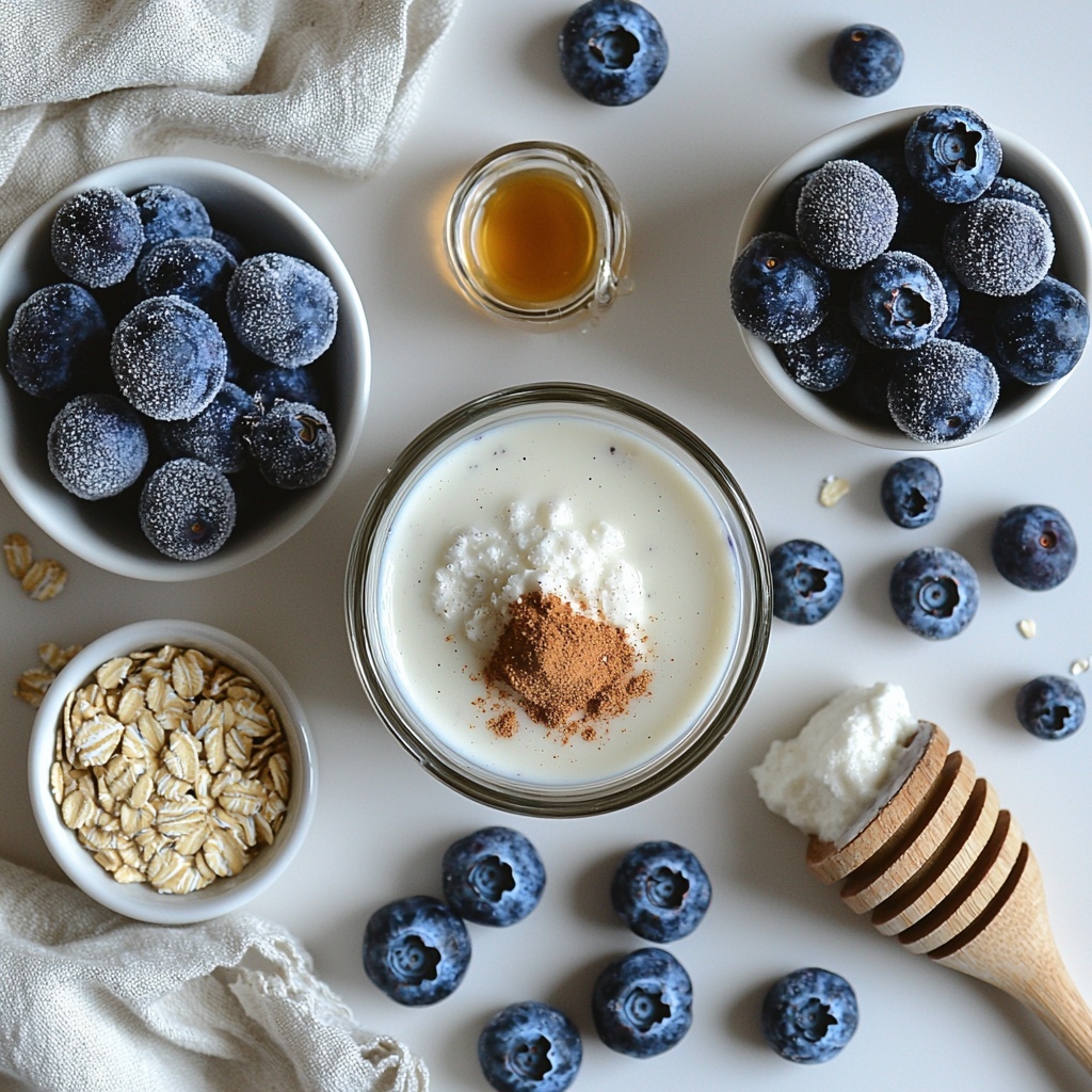 Creating the perfect Blueberry Muffin Protein Shake with Oats & Cinnamon Recipe is straightforward, requiring simple pantry staples that each bring something special to the table. From the natural sweetness of blueberries to the fiber-packed oats and the spicy warmth of cinnamon, every ingredient combines to nail the taste and texture of your favorite muffin without any baking.