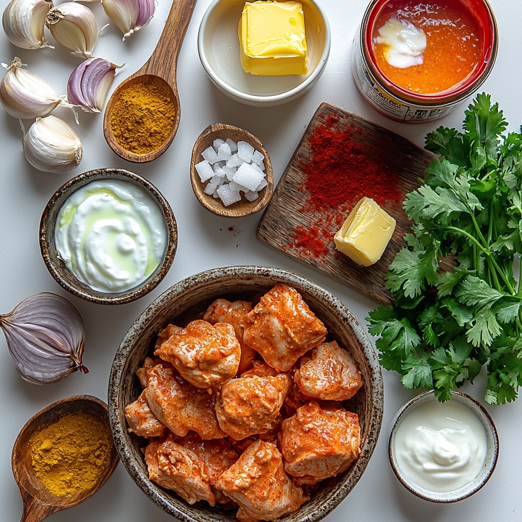 The beauty of this butter chicken recipe lies in its straightforward ingredients—each one playing a vital role in creating that beloved rich flavor and smooth texture. From the vibrant spices to the creamy tomato base, these essentials come together to deliver a truly comforting meal.