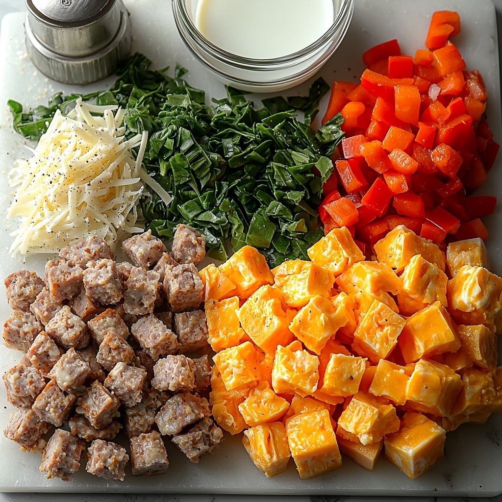 These ingredients come together effortlessly but each one plays a crucial role in making a cozy, hearty casserole that your whole family will adore. From the savory sausage to the creamy eggs and melty cheese, every component adds depth, richness, and color.