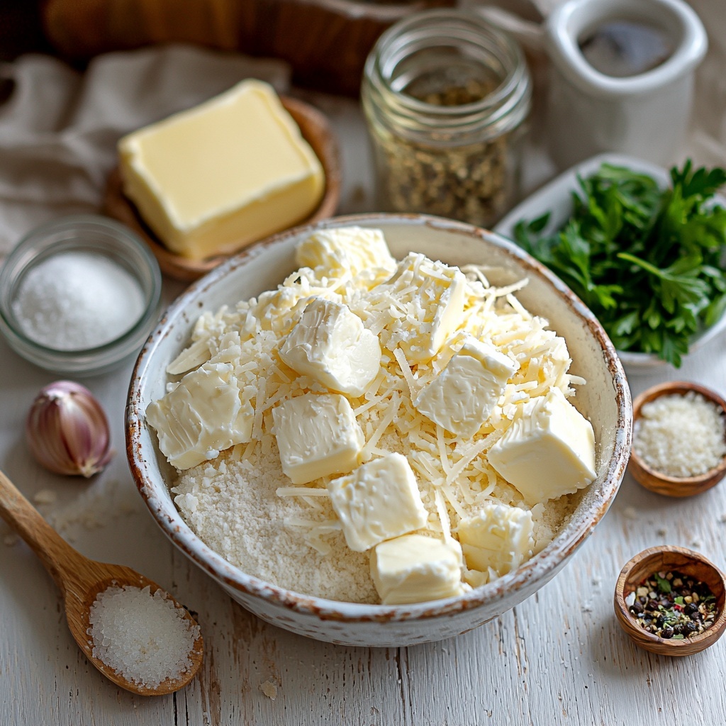 Getting the perfect Cheesy Garlic Cruffin starts with a handful of simple, pantry-friendly ingredients that come together in a harmonious dance of flavor and texture. Each component plays a vital role, from the tender, buttery dough to the rich cheese filling and the aromatic topping that finishes it all off beautifully.