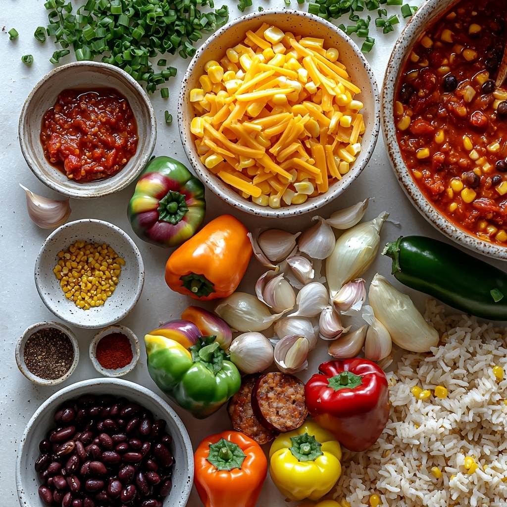 These ingredients are simple yet essential, each bringing its own magic to the dish, from the creamy richness of sharp cheddar to the smoky kick of cumin and the sweet crunch of fresh corn. Together, they create a beautifully balanced Cheesy Stuffed Peppers Recipe that’s both hearty and fresh.