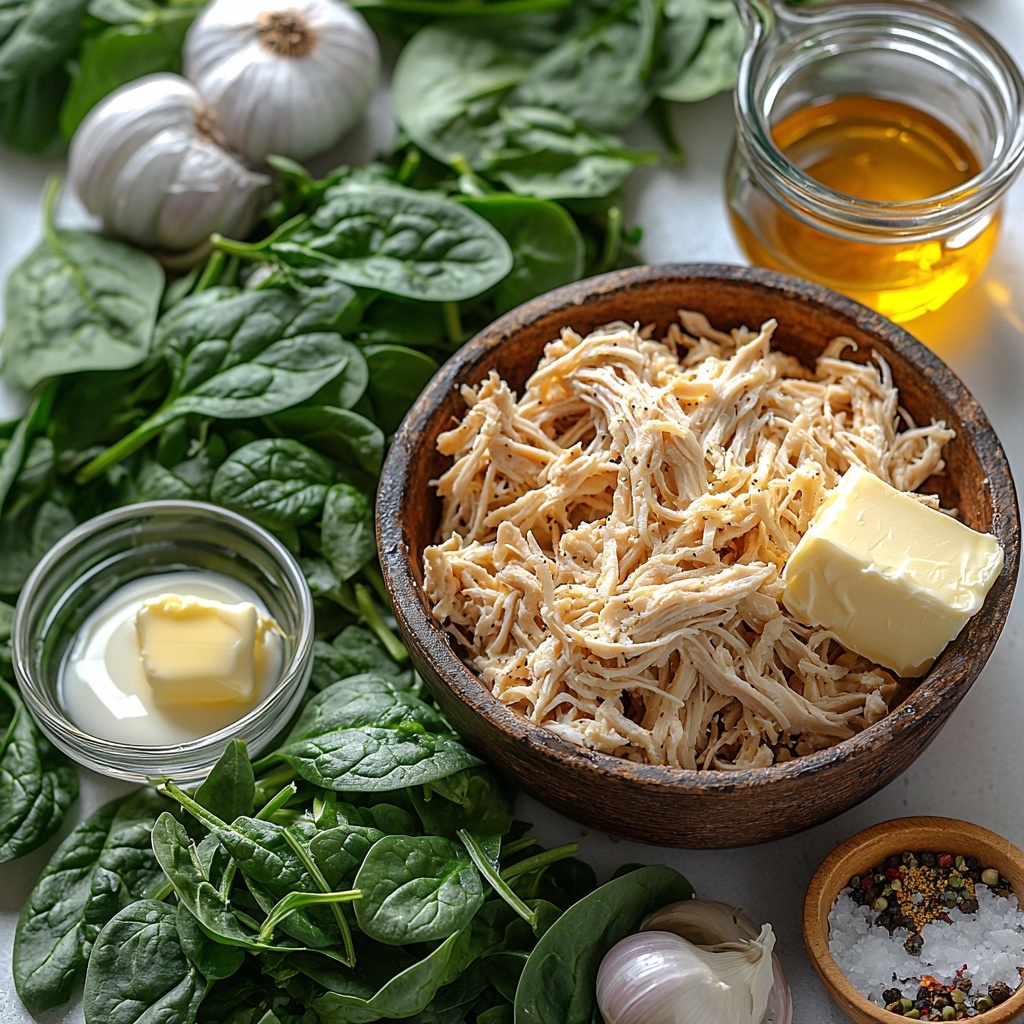 Gathering the right ingredients for this Chicken Florentine Soup Recipe is straightforward but essential. Each component plays a key role—bringing layers of flavor, creamy texture, and that lovely green pop of spinach that makes the dish feel light yet indulgent.