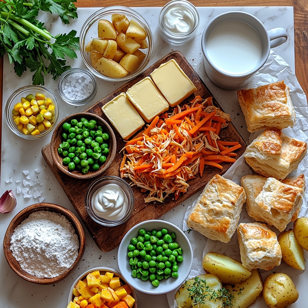 This Chicken Pot Pie Soup recipe is a creamy, hearty twist on the classic comfort food favorite. Packed with tender shredded chicken, fresh vegetables, and a rich broth thickened with a homemade roux, it’s perfect for warming up during colder months. The soup offers the full flavor of chicken pot pie in a comforting bowl, garnished with fresh parsley and optionally served with biscuits or puff pastry for an extra special touch.