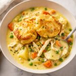 This Chicken Pot Pie Soup recipe is a creamy, hearty twist on the classic comfort food favorite. Packed with tender shredded chicken, fresh vegetables, and a rich broth thickened with a homemade roux, it’s perfect for warming up during colder months. The soup offers the full flavor of chicken pot pie in a comforting bowl, garnished with fresh parsley and optionally served with biscuits or puff pastry for an extra special touch.