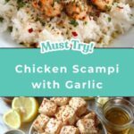 This Chicken Scampi with Garlic Parmesan Rice recipe features tender, golden-browned chicken pieces simmered in a flavorful garlic, white wine, and butter sauce, served over creamy, cheesy jasmine rice infused with garlic powder. It’s a comforting and elegant dish perfect for a satisfying weeknight dinner or a special occasion.