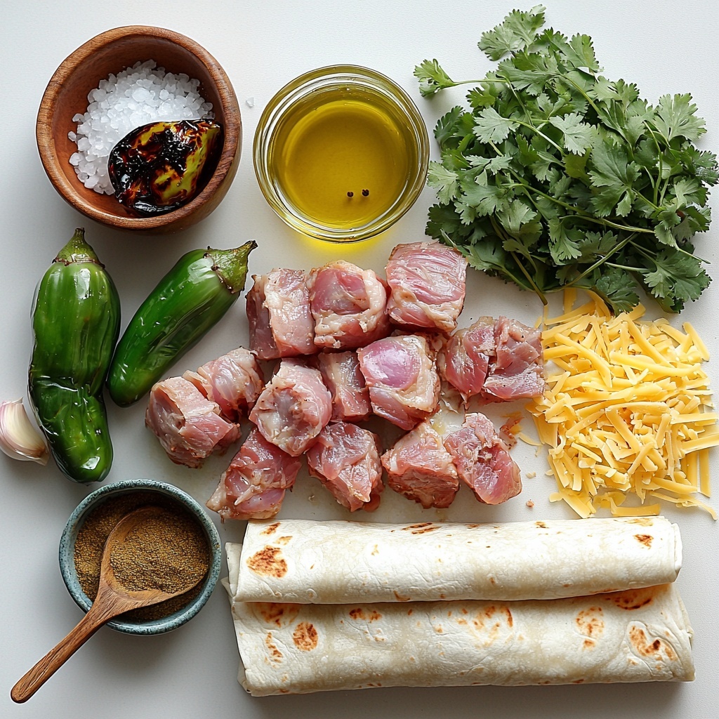 Gathering simple yet essential ingredients is the first step toward a show-stopping Chili Verde Hatch Burritos Recipe. Each component plays a crucial role, from the rich pork shoulder that offers melt-in-your-mouth texture to the fresh tomatillos and Hatch chiles that brighten up the dish with their distinctive flavors.