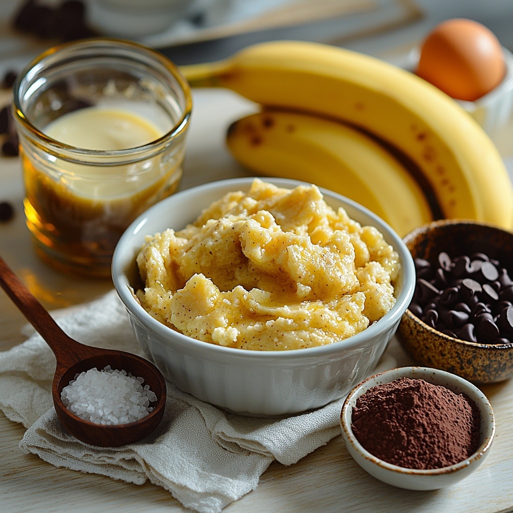 This Chocolate Banana Bread Recipe relies on a handful of beautifully simple ingredients, each playing a key role in flavor and texture. From the natural sweetness of ripe bananas to the deep cocoa tones, every element works harmoniously to create a loaf that’s moist, flavorful, and irresistible.