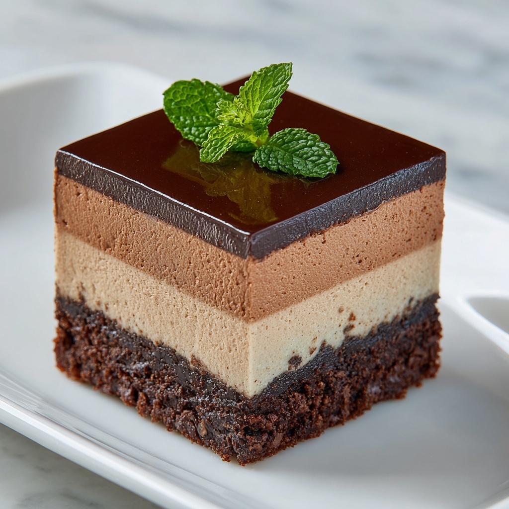 Decadent Chocolate Mousse Brownies feature a rich, fudgy brownie base topped with a smooth, airy chocolate mousse and finished with a glossy ganache topping. This delightful dessert combines multiple chocolate textures and flavors, perfect for chocolate lovers looking to impress with an elegant yet approachable treat.