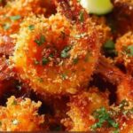 Place your coated shrimp on a baking sheet lined with parchment or a lightly greased rack to keep them crispy all around. Bake for 15-20 minutes, until they turn a gorgeous golden brown. The baking step keeps the shrimp juicy inside while getting that perfectly crispy shell outside without the mess of frying.