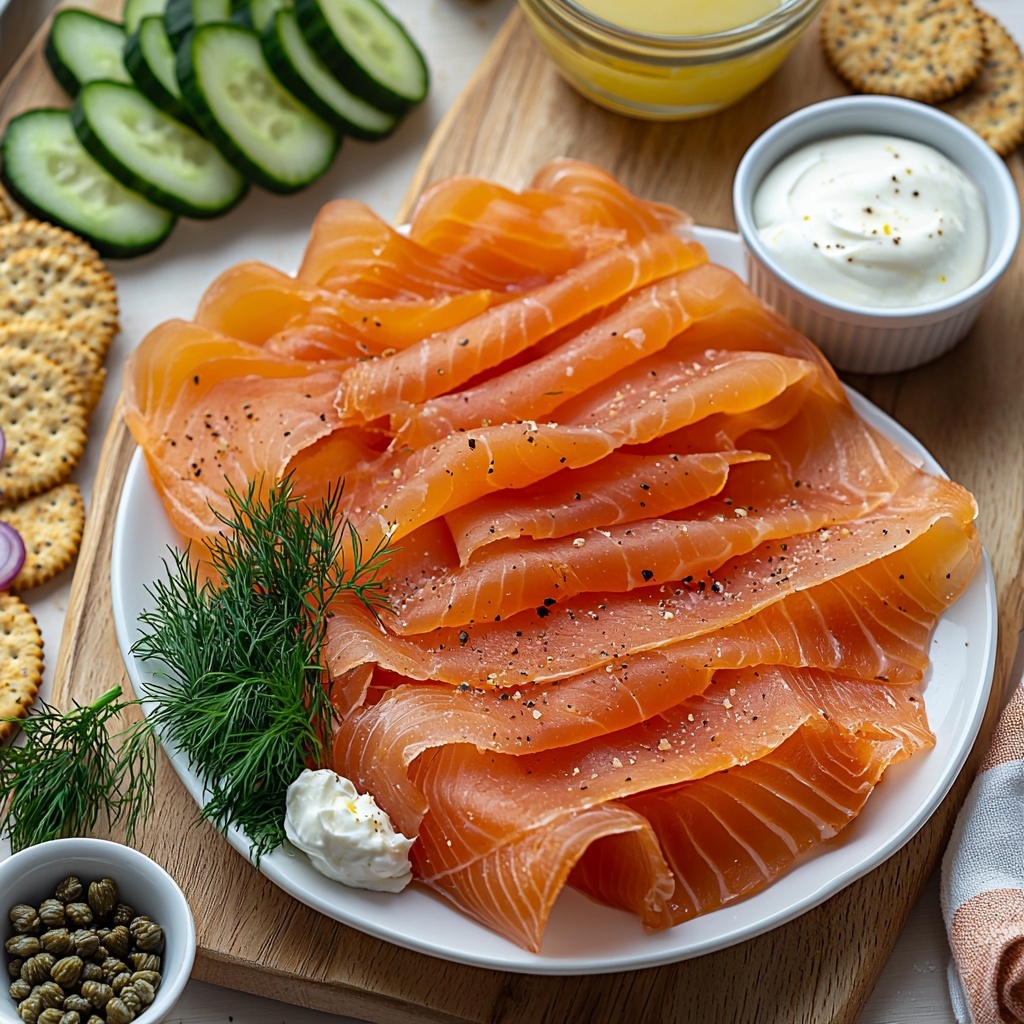 - 8 ounces Costco smoked salmon: Thinly sliced for a delicate smoky flavor that’s the star of the show.