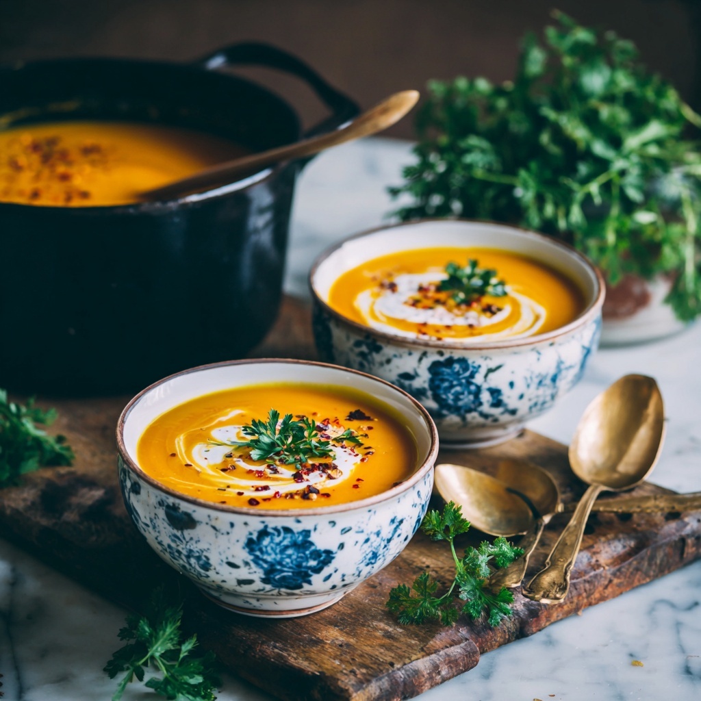 This soup pairs wonderfully with a crusty piece of bread slathered in butter or your favorite vegan alternative. The crisp bread is perfect for dipping and adds a satisfying chew alongside the silky soup. For a heartier meal, a side salad with citrusy vinaigrette adds contrast and brightens the plate.