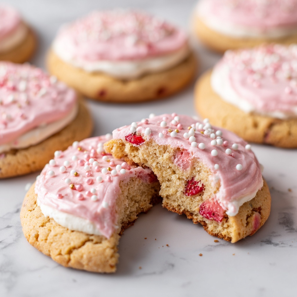 To enjoy the cookies fresh from the freezer, simply let them thaw at room temperature or warm them gently in a microwave for 10-15 seconds. This will bring back that wonderful creamy softness and slightly fresh strawberry flavor.