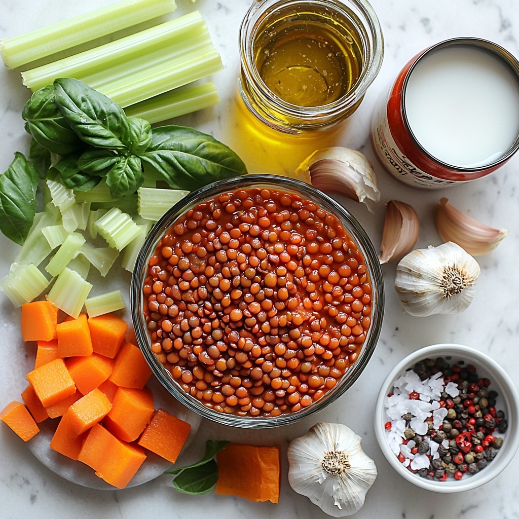 The beauty of this Creamy Tomato Lentil Soup Recipe lies in its simple yet purposeful ingredients. Each one plays a vital role: the aromatic sautéed veggies build a flavorful base, the herbs add depth and brightness, and the creamy coconut milk brings irresistible silkiness to the dish.
