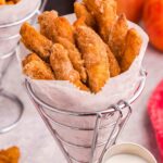 Try serving your Crispy Air Fryer Apple Fries Recipe in small paper cones or mini baskets for a fun, shareable appetizer at parties. You can also arrange them fan-style on a platter around a bowl of your favorite dipping sauce to make a beautiful centerpiece that invites everyone to dig in.