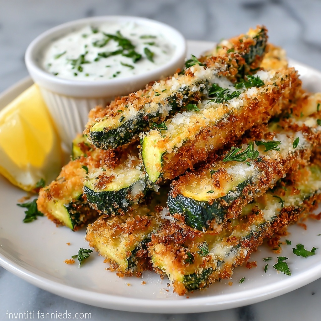 How to Serve Crispy Baked Zucchini Fries with Creamy Dill Dip Recipe