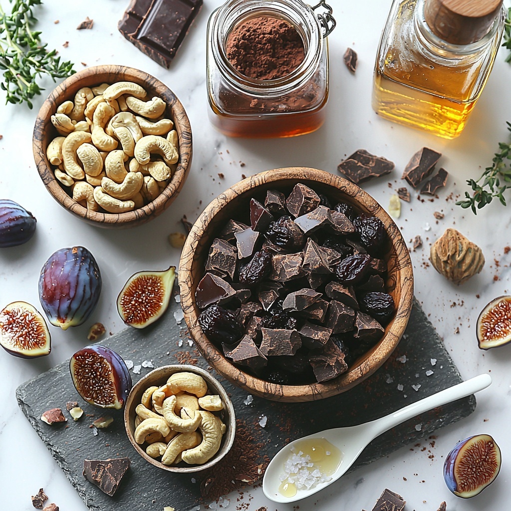 These ingredients are straightforward yet carefully selected to create the perfect harmony of flavors and textures in your bars. Each element serves a purpose—from the crunchy nuts and naturally sweet dried figs to the silky, bitter cacao powder that rounds it all out beautifully.