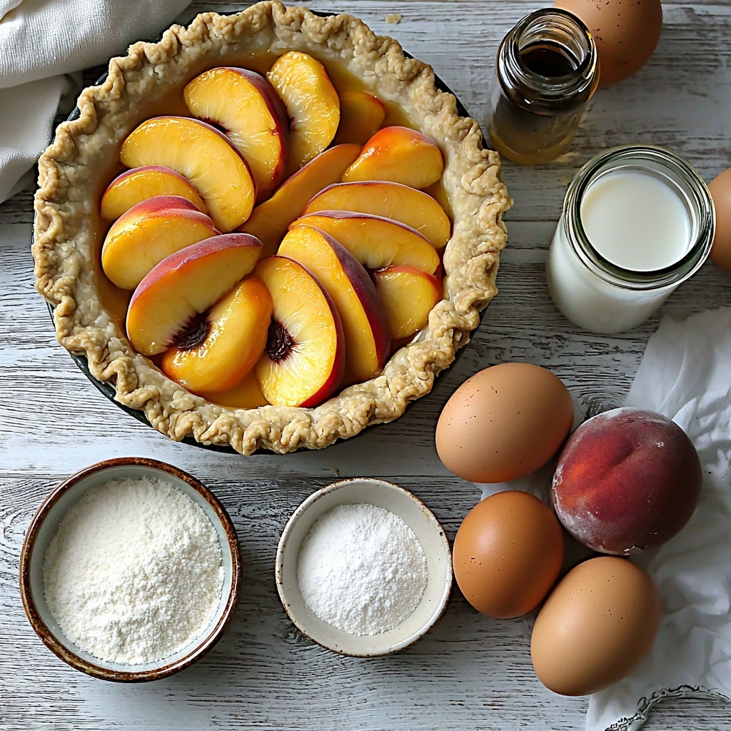 The magic of this pie lies in the simplicity and quality of its ingredients. Every component is essential, whether it’s the fragrant vanilla that elevates the custard or the perfectly ripe peaches that provide natural sweetness and vibrant color. Let’s take a look at what you’ll need to make this delightful dessert shine.