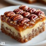 - Assemble and Top: Pour the cream cheese filling evenly over the crust in the baking dish. Sprinkle the chopped pecans evenly on top, ensuring good coverage across the surface.