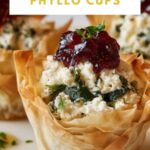 These Delicious Spinach and Feta Phyllo Cups are perfect savory appetizers featuring crispy, flaky phyllo pastry filled with a creamy mixture of spinach, feta, ricotta, and sun-dried tomatoes. Lightly seasoned and baked to golden perfection, they make a delightful bite-sized snack or party treat.