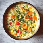 This Easy Coconut Vegetable Broth Soup is a vibrant and comforting dish featuring a creamy coconut milk base infused with fragrant garlic and ginger, combined with a medley of fresh vegetables such as carrots, bell peppers, zucchini, and green beans. Finished with fresh lime juice, cilantro, and a hint of red chili flakes, this soup offers a perfect balance of bold flavors in a light, nourishing broth.