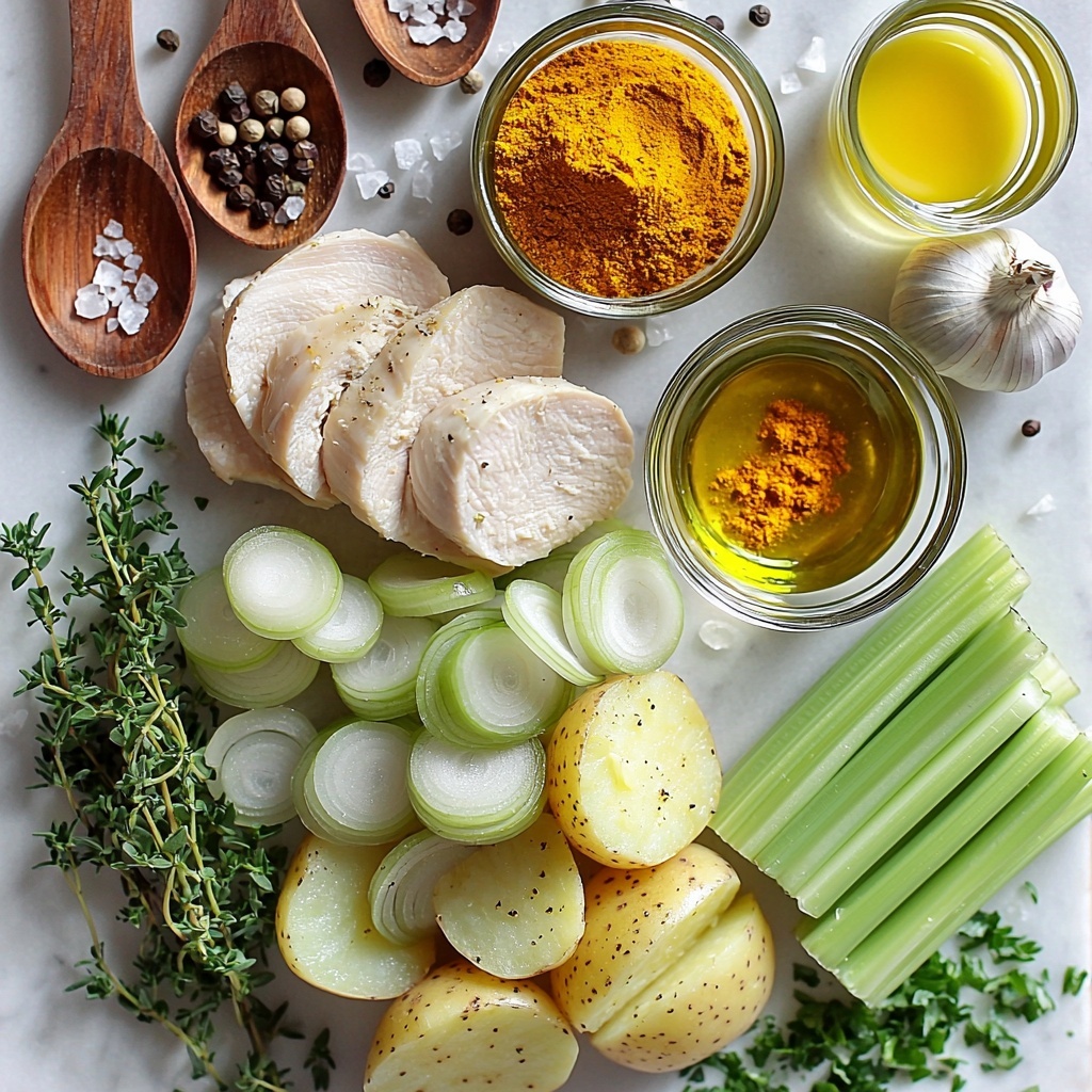 This Easy Creamy Leek and Chicken Soup is a comforting and flavorful dish perfect for a cozy meal. Featuring tender chicken breasts, creamy potatoes, aromatic leeks, and a gentle blend of spices like curry powder and turmeric, this soup balances heartiness with vibrant flavors. The soup is blended smooth and finished with fresh parsley and a touch of acidity from lemon juice or cider vinegar, creating a delightful, nourishing meal that serves 8.