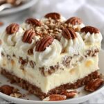 - Garnish: Sprinkle the remaining 1 cup of crushed pecans evenly over the frosted cake to create a generous nutty topping.