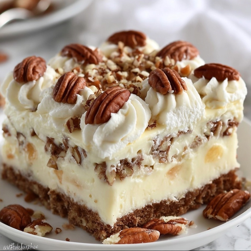 If you want to get playful, serve this cake in individual trifle glasses layered with additional pineapple chunks and chopped pecans for a deconstructed take that’s as charming as it is delicious. You can also cut the cake into small bars for a party platter or wrap simple slices in parchment paper for delightful grab-and-go treats.