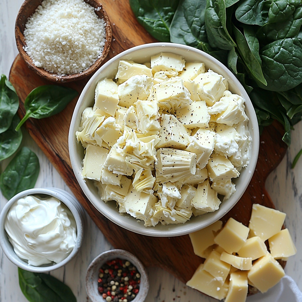What’s truly wonderful about this Fool-Proof Creamy Spinach & Artichoke Dip (Better Than Restaurant Style) Recipe is how straightforward—and thoughtfully balanced—the ingredients are. Each item plays an essential role: from the creamy base that provides richness to the artichokes and spinach that bring fresh texture and color, and the cheeses that add melty, savory goodness. Let’s break down the essentials you’ll need: