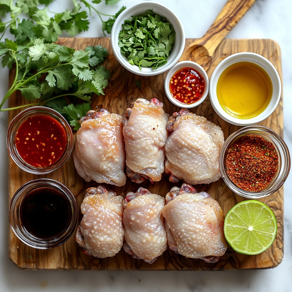 While the grill heats up, mix the sweet chili sauce, soy sauce, lime juice, sriracha, and freshly chopped cilantro in a small bowl. This glaze is the heart of the dish, delivering layers of sweet, tangy, and spicy notes that will coat the chicken beautifully during grilling.