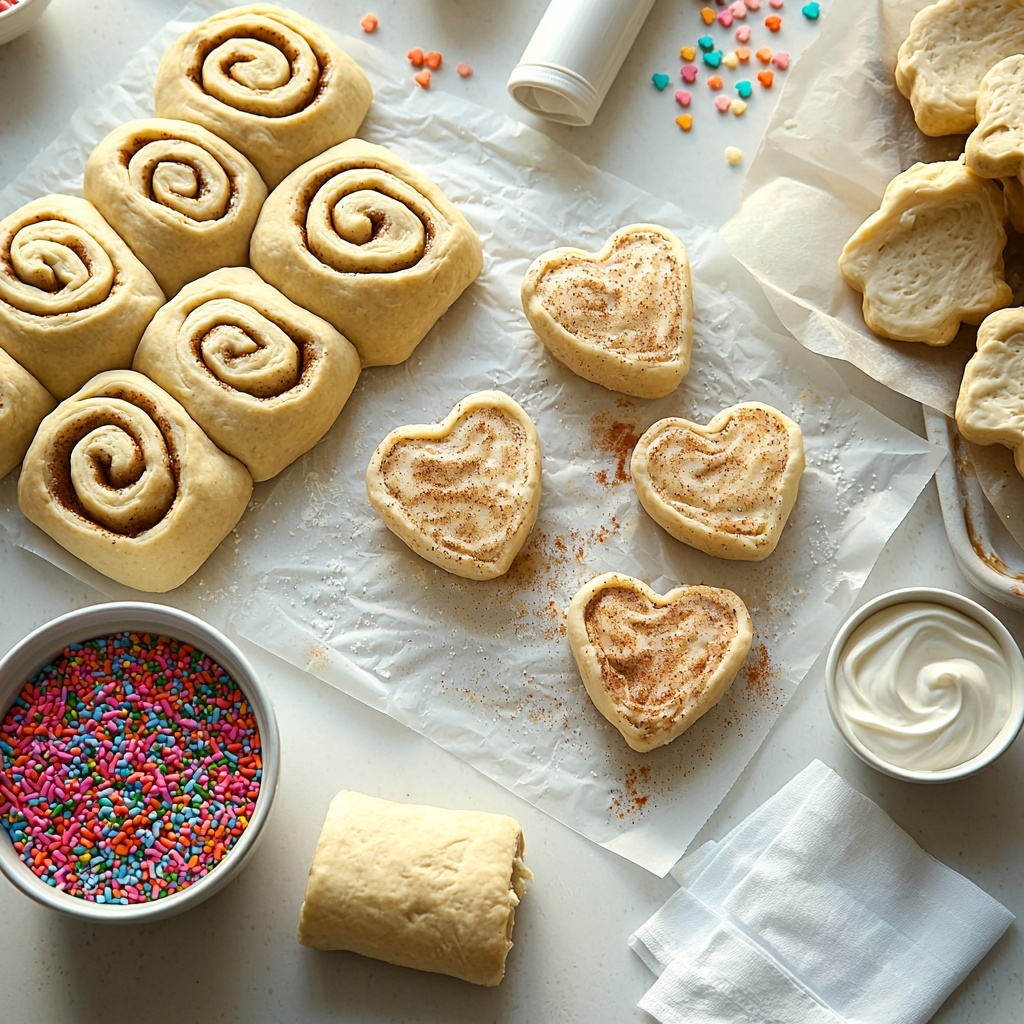 - Prepare for baking: Place the shaped heart cinnamon rolls on a baking sheet lined with parchment paper, spacing them evenly to allow for rising and baking.