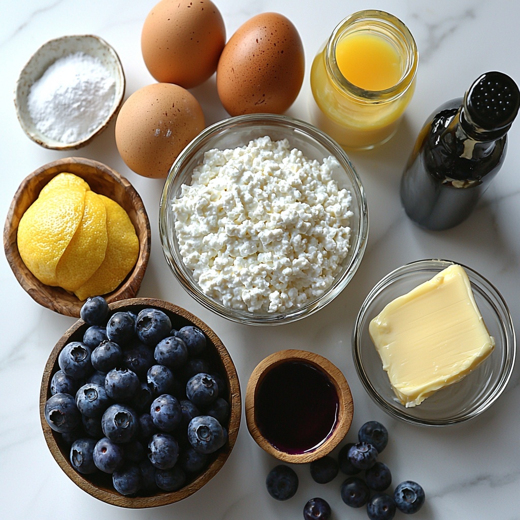 The magic of this High-Protein Lemon Blueberry Breakfast Bake with Cottage Cheese Recipe comes from straightforward ingredients that deliver fantastic taste and texture. Each element plays a vital role: cottage cheese adds creamy protein, eggs bind and lift, lemon zest and juice provide fresh vibrancy, and blueberries lend a natural sweetness and striking color.