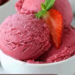 Enhance your sorbet’s natural beauty with a few thoughtfully chosen garnishes. Fresh mint leaves add a pop of color and a refreshing contrast, while a few whole strawberries placed on top bring texture and extra sweetness. You can also sprinkle a little lemon zest for an additional citrus aroma that complements the sorbet perfectly.