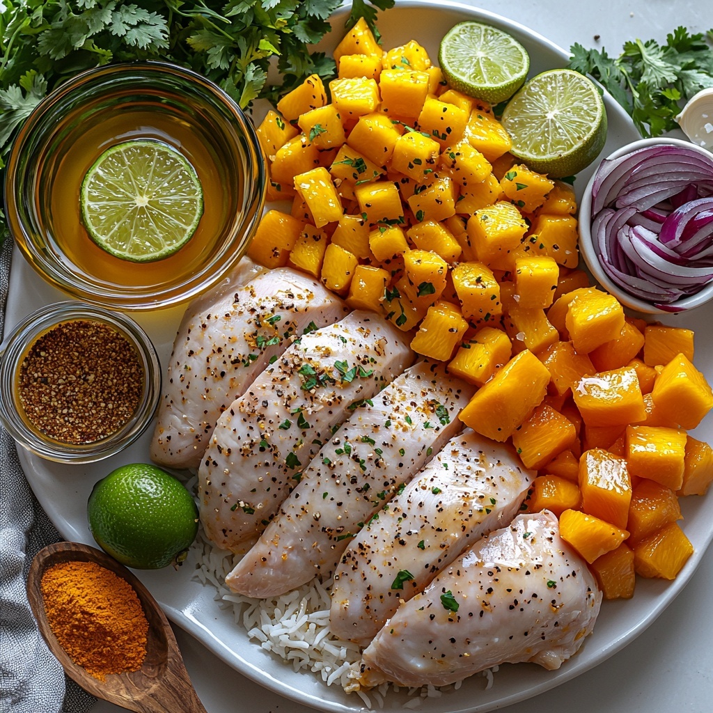 - 1 large ripe mango, diced: Sweet and juicy, it adds a lovely tropical contrast to the savory chicken.