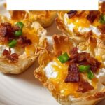 Delight your guests with these Iowa Party Bites featuring a creamy, cheesy filling of cream cheese, cheddar, green onions, and bacon, all nestled in crispy mini phyllo pastry cups. Perfectly baked until golden and bubbly, these bite-sized appetizers are ideal for any occasion.