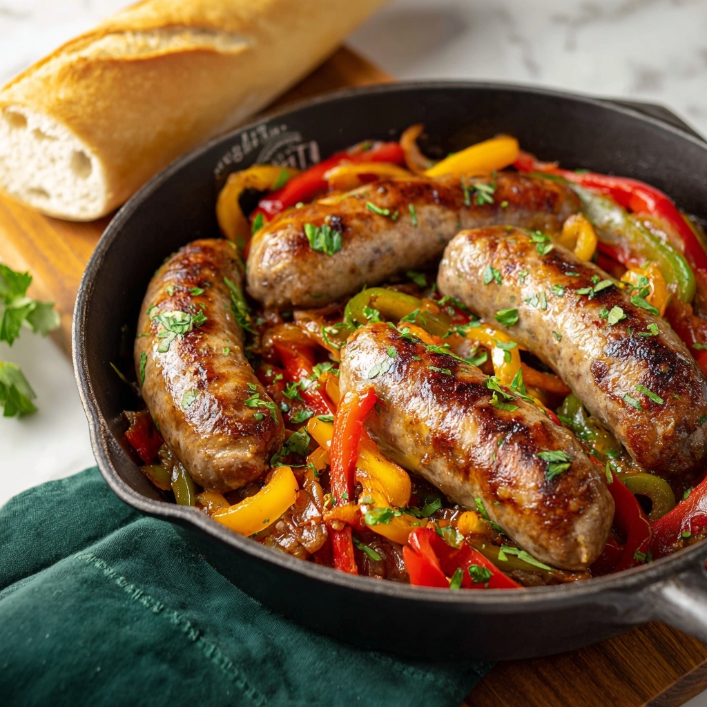 Start by heating olive oil in a large skillet over medium heat. Add the sliced beef Italian sausage and cook until it’s nicely browned and sizzling, about 5 to 7 minutes. This step locks in the rich flavor and gives the sausage a great texture. Once browned, remove the sausage and set it aside for later.
