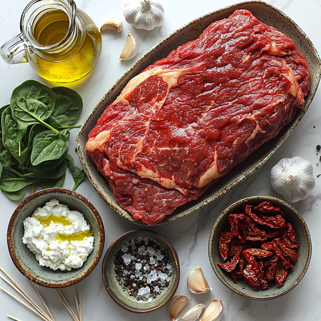 The beauty of this Italian Stuffed Flank Steak Recipe lies in its straightforward, fresh ingredients, each playing a key role in delivering its vibrant flavor and satisfying texture. Every component from the creamy ricotta to the fragrant herbs builds layers of taste that make this dish truly irresistible.