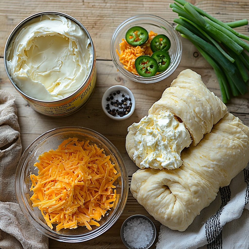 This Jalapeno Popper Crescent Rolls Recipe uses simple, straightforward ingredients that come together quickly but pack a serious flavor punch. Each component plays a crucial role, from the flaky crescent dough that bakes up golden and tender, to the perfectly balanced spicy and cheesy filling that keeps every bite exciting.