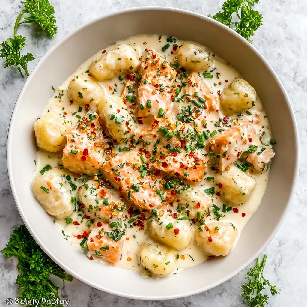 Adding fresh garnishes can take your Juicy Smoked Salmon Gnocchi Recipe to the next level. Consider sprinkling additional Parmesan cheese for an extra cheesy hit or some freshly chopped parsley or dill for a burst of freshness. A light drizzle of high-quality olive oil or a squeeze of lemon juice can brighten the richness beautifully.