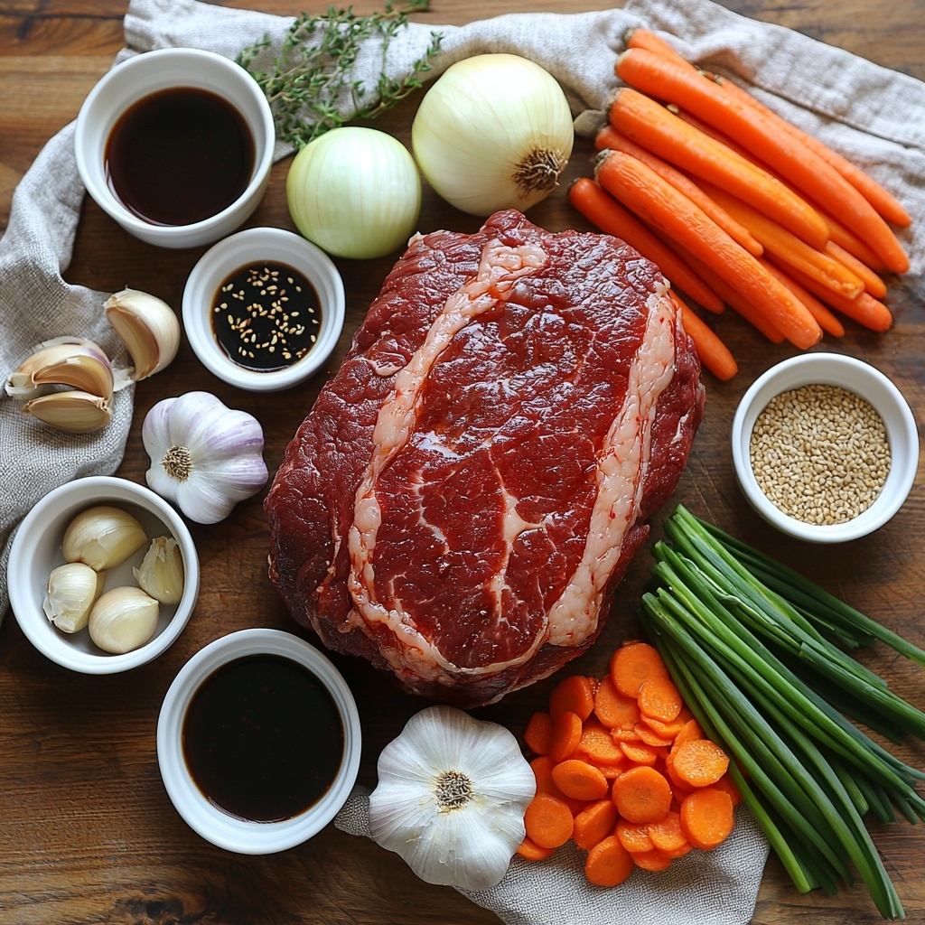 These ingredients might seem simple, but each one is essential to creating the multi-layered flavors that define this Korean Pot Roast: 7 Secrets to Unforgettable Flavor Recipe. From savory soy sauce to the warmth of ginger and the rich nuttiness of sesame oil, every component has a role in perfecting the taste, texture, and color of the dish.