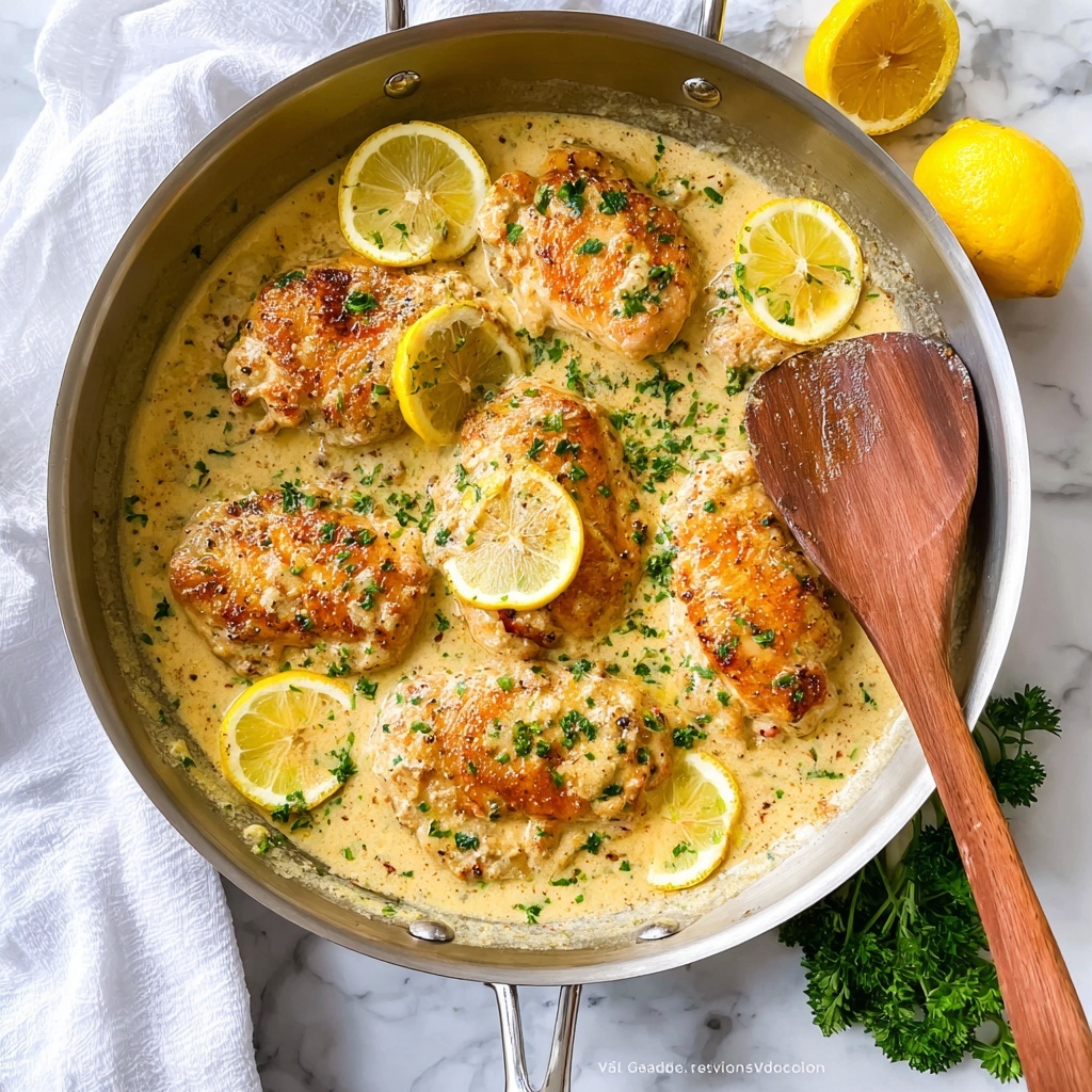 This Lemon Garlic Chicken recipe features tender, thinly pounded chicken breasts seared to a golden crust and served with a luscious, creamy garlic and lemon sauce infused with white wine, Parmesan cheese, and aromatic herbs. The dish is perfect for a flavorful weeknight dinner or a special occasion, brightened by fresh lemon juice and optionally topped with a crunchy panko topping for added texture.