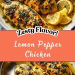 This Lemon-Pepper Chicken recipe features tender boneless, skinless chicken breasts marinated in a zesty blend of fresh lemon juice, lemon zest, black pepper, garlic powder, oregano, and olive oil. Perfectly baked or grilled, it delivers a bright, flavorful, and juicy main dish that comes together quickly, making it an ideal choice for a healthy weeknight dinner.