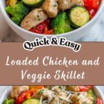 A quick and nutritious Loaded Chicken and Veggie Skillet featuring tender diced chicken breast sautéed with colorful bell peppers, zucchini, broccoli, and cherry tomatoes. Enhanced with Italian seasoning, fresh garlic, and Parmesan cheese, this vibrant one-pan meal is perfect for a healthy weeknight dinner.