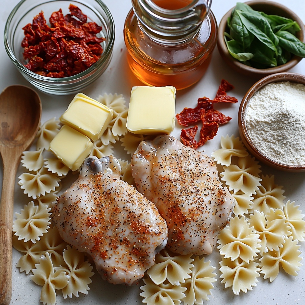 Marry Me Chicken Pasta is a creamy, flavorful dish featuring tender seared chicken thighs and farfalle pasta tossed in a rich sauce made with sun dried tomato oil, garlic, parmesan, and fresh spinach. Perfect for a quick and satisfying meal in just 25 minutes, this recipe blends Italian seasonings with a gluten-free twist for an irresistible dinner option.
