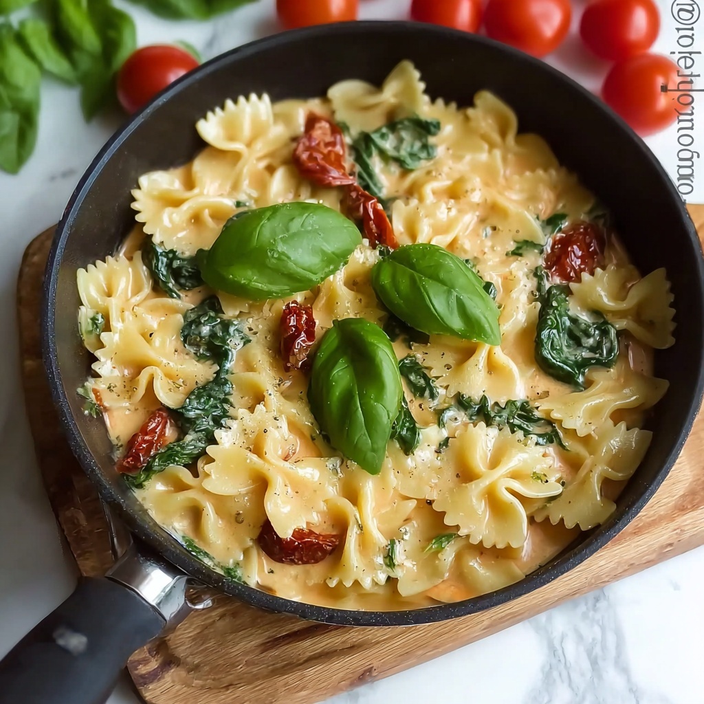 Try serving this pasta in shallow bowls to showcase the creamy sauce and colorful toppings. For a dinner party, consider plating the pasta neatly with the chicken slices artfully arranged on top. A sprinkle of toasted pine nuts or a drizzle of extra virgin olive oil right before serving can add unexpected texture and a glossy finish that’s sure to impress.